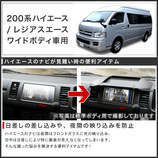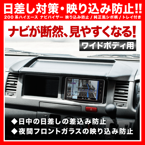 200系 ハイエース 1-3型 DX ワイドボディ [H16.8-H25.10] ナビバイザー カーナビの日差し対策
