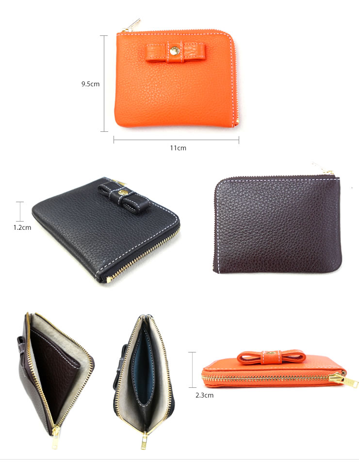 ■本体 [サイズ] 横11.3cm 縦9.5cm 厚さ1.2cm (リボンまでの厚さ:2.3cm) [素材] メイン:牛革 裏地:豚革スエード [重さ] 50g [機能] メインポケット×1 コインポケット×1 ※サイズ、重さは概寸です。