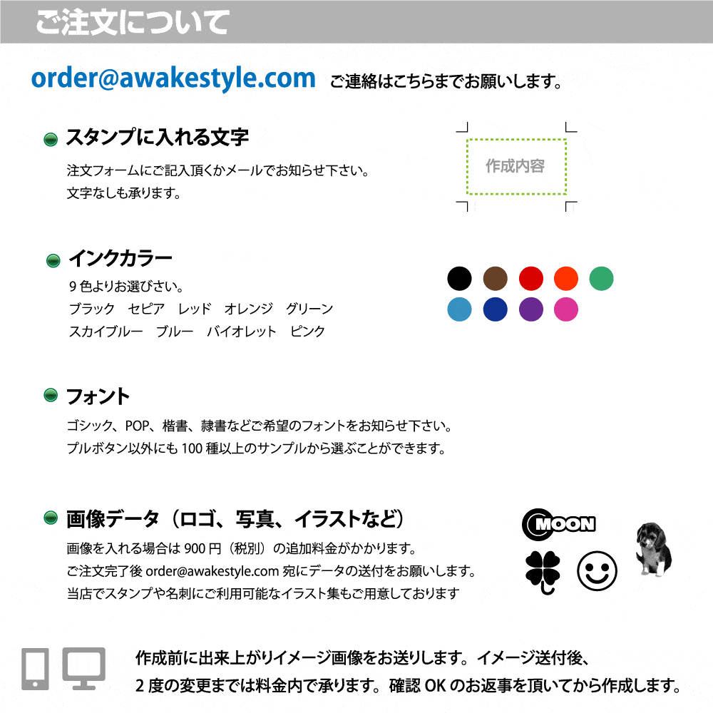 デザインの参考に豊富なオーダースタンプ作成のサンプルをご用意しております。