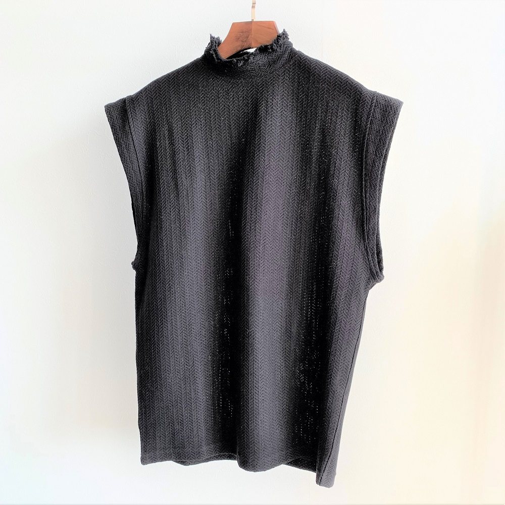 (P+)hatra "aro cla"ハイネックプルオーバー htr_s19_TO03 black size:1 レディースS〜Mサイズ ハトラ ノースリーブ ニット 重ね着 モード