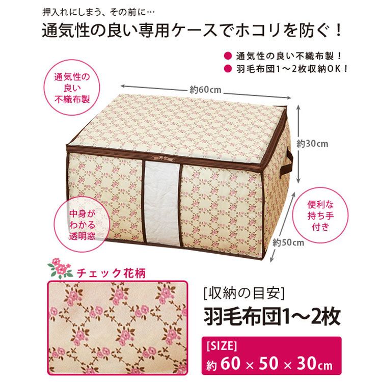 羽毛布団収納袋持ち手付 チェック花柄 1007568布団 ふとん 持ち手 収納袋 取っ手 アイメディア株式会社 【D】